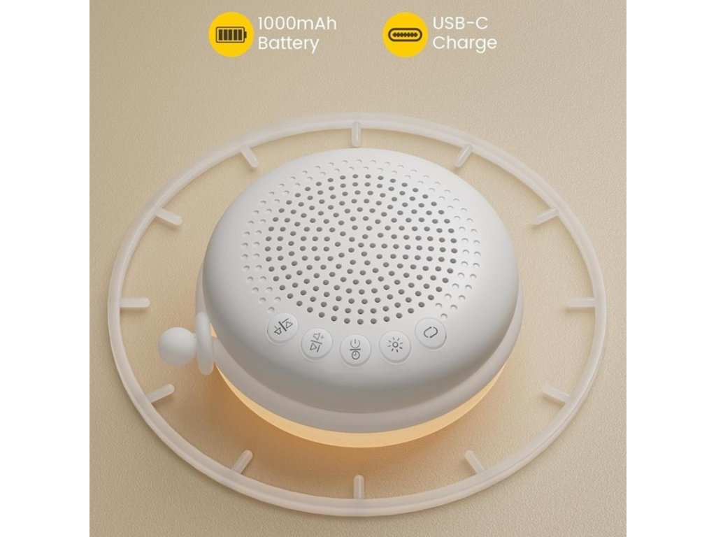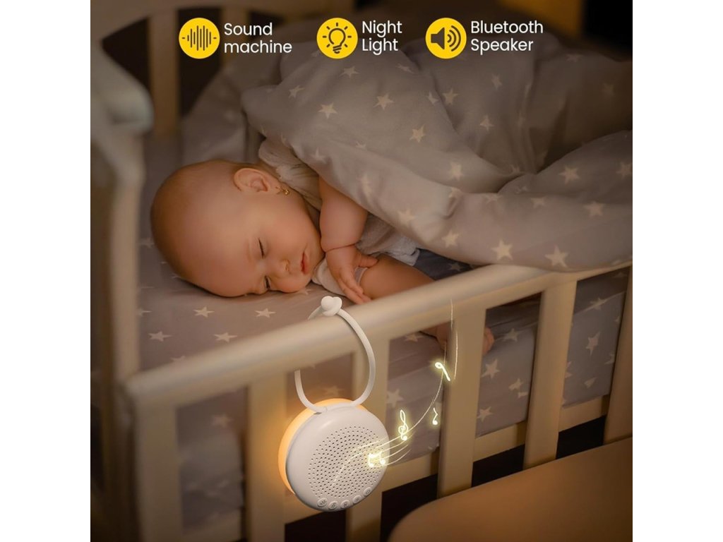 Ez a multifunkciós altató készülék fehér zajjal, zenével és éjszakai fénnyel ideális segítség babáknak, kisgyermekeknek és szülőknek, akik nyugodt és biztonságos alvókörnyezetet szeretnének teremteni. Segít a gyermeknek gyorsabban elaludni, meghosszabbítja a nyugodt alvás idejét, és megkönnyíti az esti és éjszakai gondoskodást. Kompakt méretének köszönhetően nemcsak a gyerekszobába ideális, hanem utazáshoz, babakocsiba vagy kiságy mellé is.