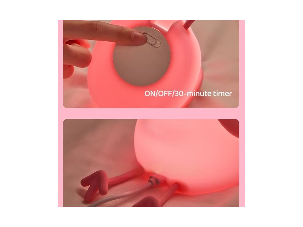 éjszakai lámpa gyerekszobába szilikon kivitel LED izzó, töltőkábellel három világítási mód, időzítőhető