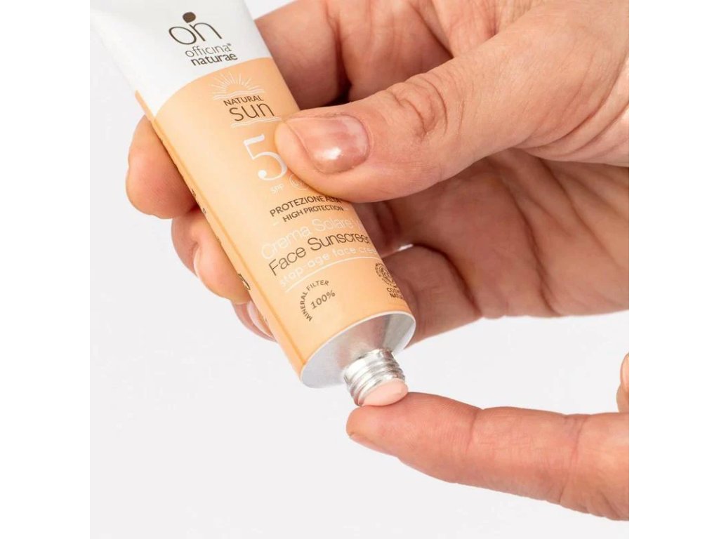 Officina Naturae SPF 50 Face krém érzékeny arcbőrre, amely magas fokú UVA/UVB védelmet nyújt, és egyben feszesítő ápolást biztosít. Illatanyagmentes – ideális mindennapi használatra és reaktív bőrre is.