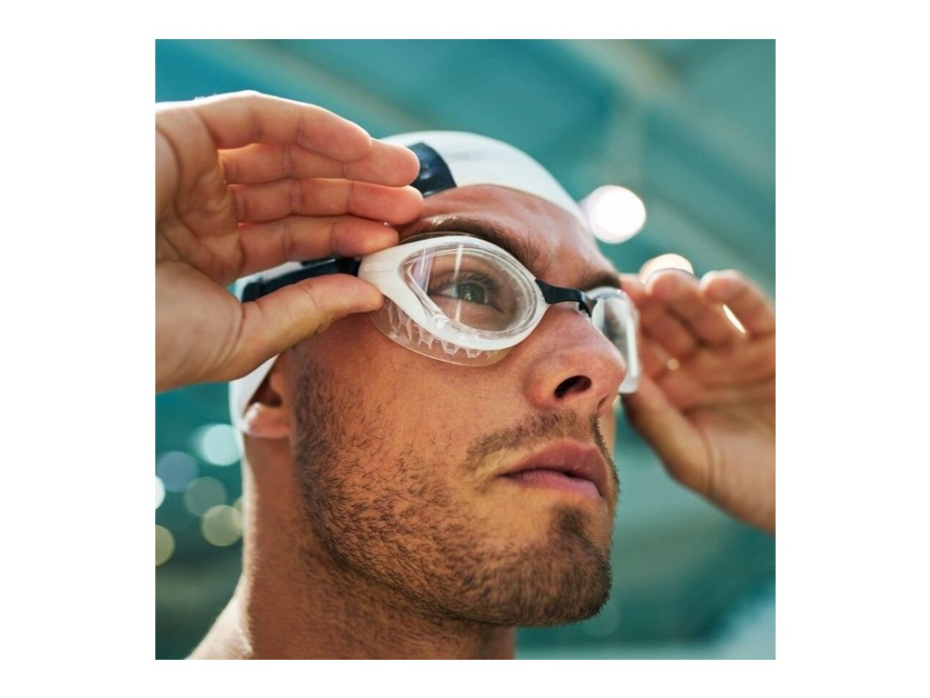 A szemüveg széles panorámás lencsékkel van felszerelve, amelyek szélesebb oldalsó látást biztosítanak – ideális a tájékozódáshoz a medencében és nyílt vízben történő úszás során is. A világos lencseszín beltéri medencékhez és alacsony fényintenzitású környezethez megfelelő. Természetesen UV-védelemmel is rendelkezik, amely védi a szemet kültéri úszás közben.
