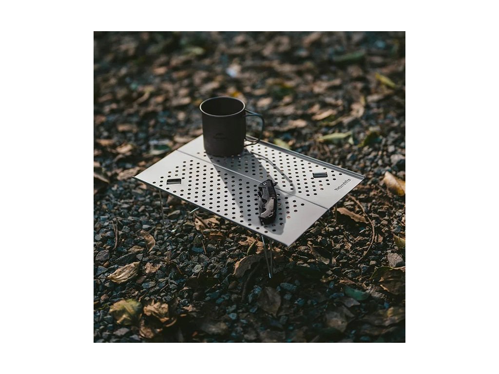 Ez a MINI összecsukható asztal tökéletes választás mindenkinek, aki igazán könnyű, kompakt és azonnal használható megoldást keres kempingezéshez, túrázáshoz, utazáshoz vagy rövid pihenőkhöz a természetben. Az 5052 alumíniumötvözetből és 304 rozsdamentes acélból készült átgondolt szerkezetnek köszönhetően magas tartósságot kínál minimális súly mellett – mindössze 280 gramm. Ideális mindazok számára, akik szeretnének mindig kéznél tartani egy stabil felületet ételnek, eszközöknek vagy apró felszerelésnek anélkül, hogy nehéz bútort kellene magukkal vinniük.