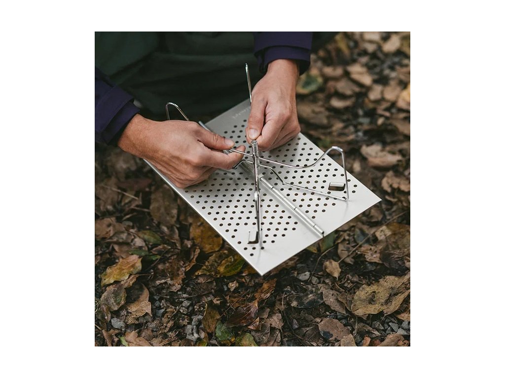A MINI asztal egyik legegyszerűbb telepítési rendszerével rendelkezik – néhány másodperc alatt egyetlen darabból nyitható ki. Az X-alakú szerkezeti merevítés szilárdságot és stabilitást biztosít egyenetlen felületeken is. Ennek köszönhetően biztonságosan használható a természetben, a tónál vagy pikniken. Összecsukva mindössze 10,8 × 31 × 1,7 cm, így bármely hátizsákban vagy autós rekeszben könnyedén elfér.